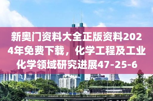 新奥门资料大全正版资料2024年免费下载,化学工程及工业化学领域研究进展47-25-6